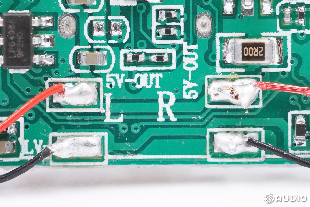 헤드폰 마더 보드 다시 클로즈업입니다.