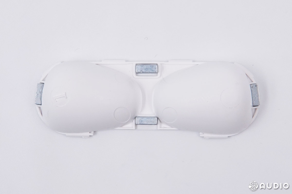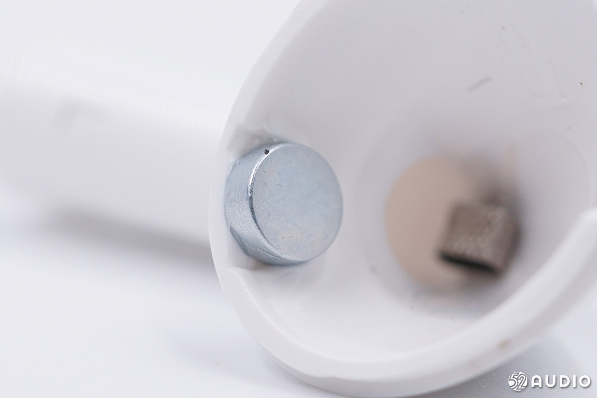 내부 이어폰 포지셔닝 자석 및 충전 상자 닫는 자석 클로즈업.