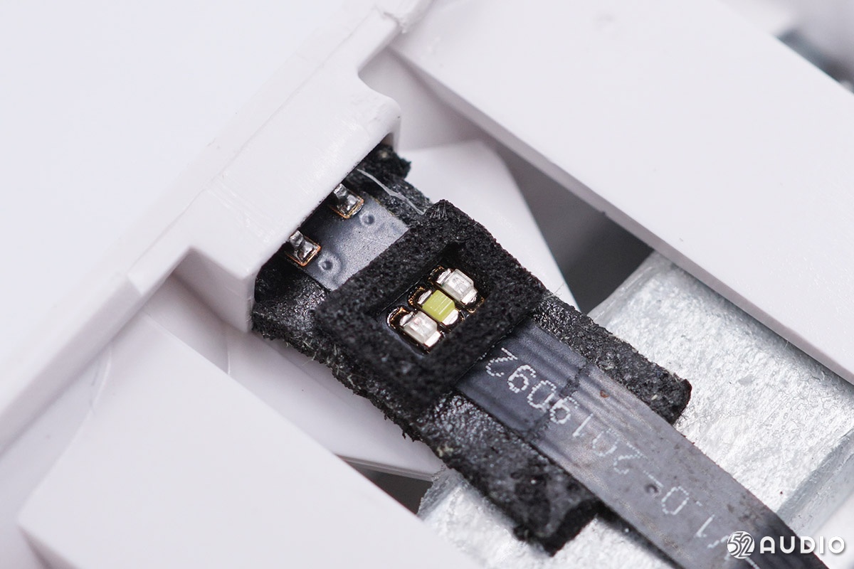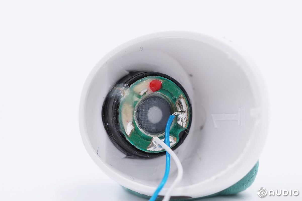 헤드 커버의 내부 스피커 유닛 클로즈업.