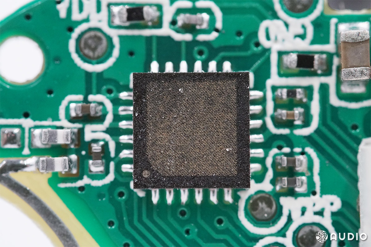 세련된 Bluetooth 오디오 SoC 클로즈업의 표면, 특정 모델은 알려져 있지 않으며,