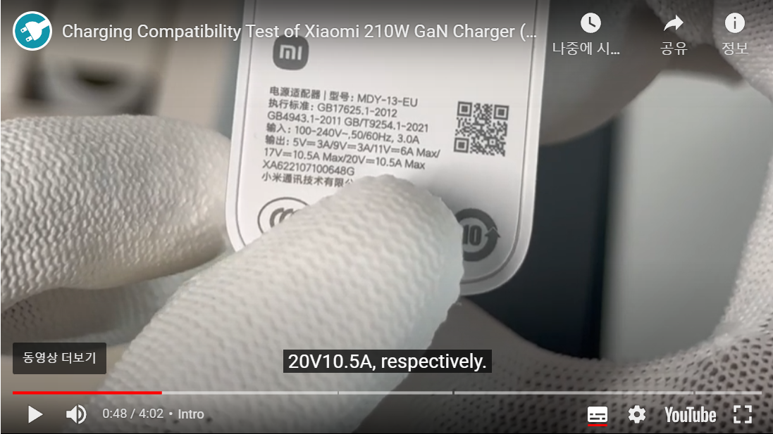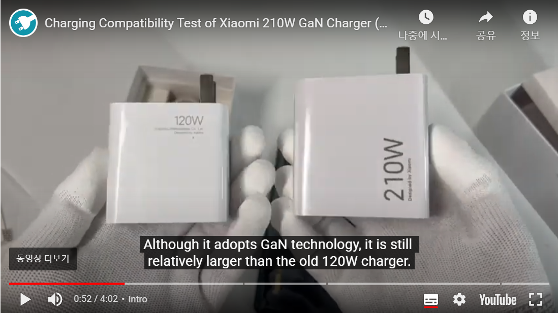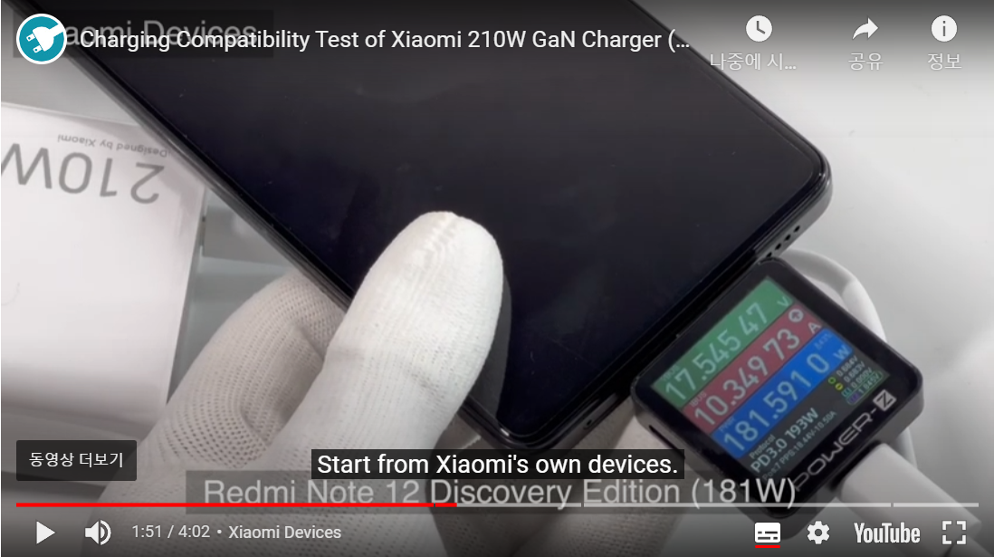 샤오미 레드미 노트12 ==> 210W GaN 충전 ==> 17V / 10A = 181W (PD3.0)